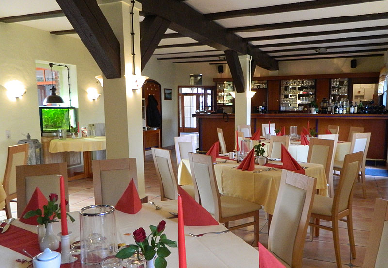 Es ist Ruhe eingezogen im ehrwürdigen Gemäuer. Zu hören sind hier höchstens schwatzende Gäste, die es sich im Gastraum gemütlich gemacht haben und auf ihre Speisen warten oder aber mit einem Glas Wein im Innenhof unter einem der knorrigen Apfelbäume den Sommerabend ausklingen lassen. Und vielleicht vernimmt man ab und an ein leises Hantieren in der Küche, wenn sich das Personal daran macht, die Töpfe zurechtzurücken um die Gaumen der Gäste mit Köstlichkeiten zu verwöhnen.
